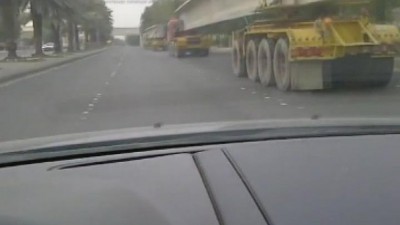 تناقل مغردون على شبكات التواصل الاجتماعي، مقطع فيديو يظهر شاباً يمر بسيارته تحت شاحنات ضخمة تحمل صبات بناء كبيرة، على طريق المطار بالمدينة المنورة (غرب السعودية).