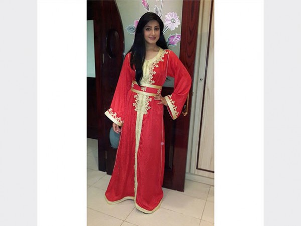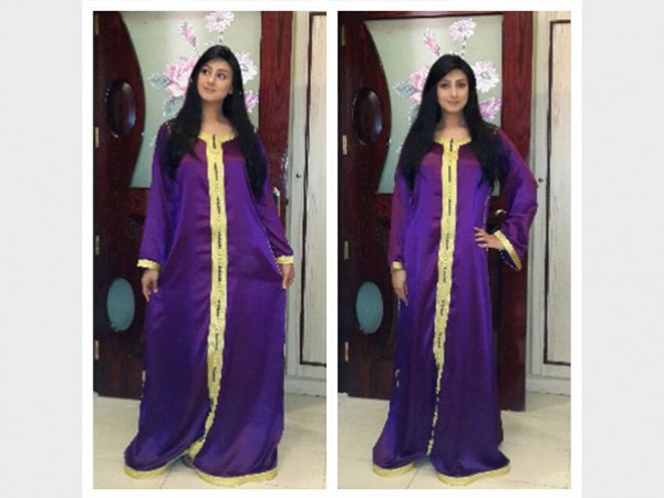 هيفاء نشرت صور لها وهي ترتدي أكثر من قفطان مغربي أحدهما باللون الأحمر والأخر باللون البنفسجي، وعلقت : «صباح الأزياء المغربية من تصميم الحبوبة سارة قمبر».