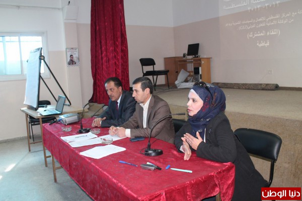 نظمت بلدية قباطية ، اليوم السبت الموافق 11-1-2014، لقاء موسعا مع أهالي البلدة من اجل بحث آليات حل مشكلة النفايات في البلدة، وذلك بدعم من التعاون الألماني (GIZ)، وبالشراكة مع المركز الفلسطيني للاتصال والسياسات التنموية .