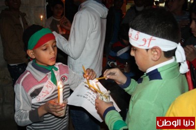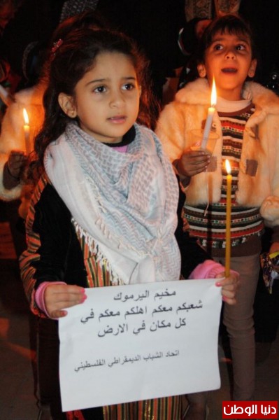 فيما القى مجموعة من الاطفال المشاركين في الاعتصام مرددين الهتافات و الكلمات متضامنين و مطالبين فيها حماية اطفال مخيم اليرموك من القتل والجوع والبرد مضيئين الشموع ورافعين الشعارات المنددة بالعدوان المستمر ضد اهلنا في المخيم الاعزل الامن ارادته .