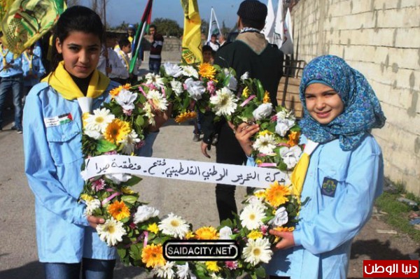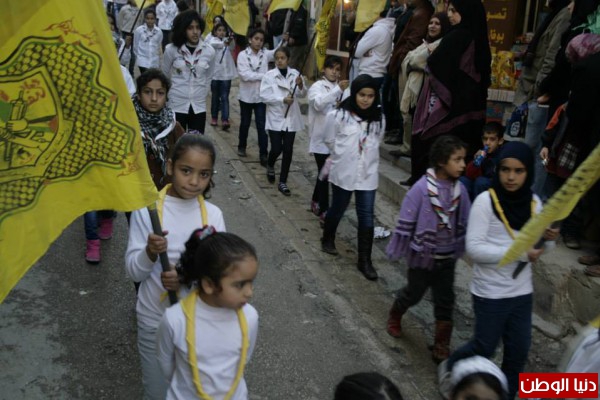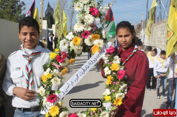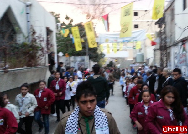 وكان مناصرو فتح نظموا للمناسبة مسيرات في كل من مخيمي البرج الشمالي والبص حمل خلالها المشاركون الاعلام اللبنانية والفلسطينية وصورا للرئيس الراحل ياسر عرفات ورايات حركة فتح كما استعرضوا فرقا كشفية.