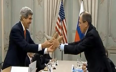 بدأ اللقاء الثنائي بين وزيري الخارجية الروسي سيرغي لافروف والأمريكي جون كيري في باريس لبحث التحضير لمؤتمر "جنيف-2" بمزحة أثارت التفاؤل في نفوس الدبلوماسيين بشأن النتيجة المرجوة للمحادثات.