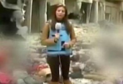 كأن الدنيا قد ضاقت بهذه المراسلة المغمورة فلم تعد تجد غير جثث القتلى لتقف بينها، وهي بكامل أناقتها، في صورة صادمة تعكس واقع الإجرام الذي يُمارس في سوريا. وما أشبه اليوم بالبارحة، فهذه ليست المرة الأولى التي يمارس فيها إعلاميو نظام بشار الأسد الرذيلة الإعلامية، فقبلها حققت مراسلة سبقاً صحافياً عندما أجرت حواراً مع طفلة جريحة وهي في حضن جثة أمها الميتة.