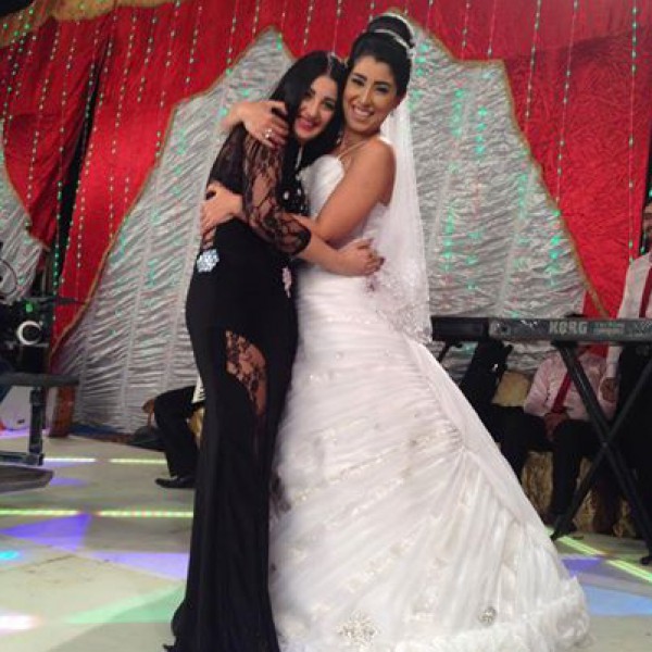 نشرت الممثلة المصرية آيتن عامر صورة وهي ترتدي فستان الزفاف الأبيض وتحتضن الراقصة "صافيناز " .