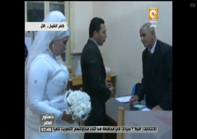 بالفيديو: عروسان يقضيان ليلة الزفاف بلجنة الاستفتاء بمصر