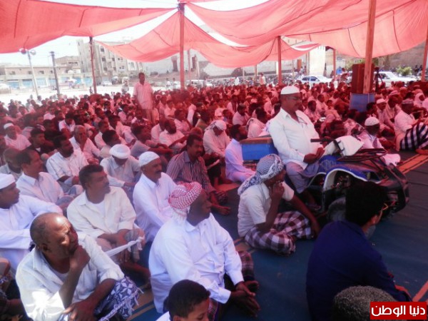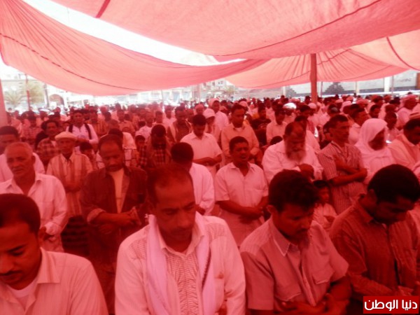وبعد صلاة الجمعة اداء المصلين في الساحة صلاة الميت الغائب لروح كلاً من الشهيد حسين عيسى البحسني الذي استشهد في معركة يوم الاحد الفائت بين جيش الاحتلال اليمني وحلف قبائل حضرموت . وروح الشهيد الطفل عبدالرحمن صالح اليميني وكل شهداء الجنوب .