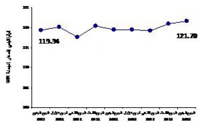 سجل الرقم القياسي العام لأسعار الجملة ارتفاعاً بنسبة 0.56% خلال الربع الرابع 2013 مقارنة بالربع الثالث 2013، حيث بلغ الرقم القياسي العام لأسعار الجملة 121.70 مقارنة بـ 121.02 خلال الربع السابق (سنة الأساس 2007=100).