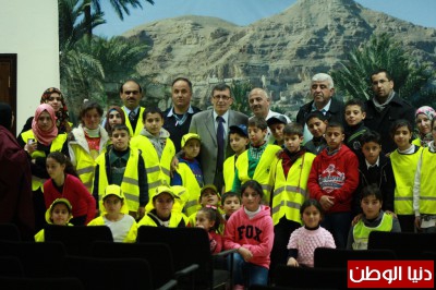 واطلع المحافظ الفتياني الطلبة على اجراءات الاحتلال الاسرائيلي في الاغوار من محاصرة للمنطقة ومصادرة الاراضي وهدم للبيوت ومطاردة للمواطنين مشيرا الى ان هذه الاجراءات التي تمارس يوميا تثبت ان الاحتلال غير معنية بالسلام