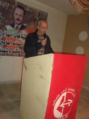 وفي هذه المناسبة ألقى الرفيق أحمد دوالي مسؤول الجبهة في شاتيلا كلمةً تحدث فيها عن نضالات الأمين العام ورفاقه، وتحدياتهم للجلاد الصهيوني في سجونه.