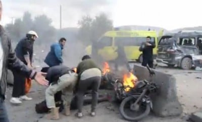 وبث ناشطون معارضون على موقع "يوتيوب" الإلكتروني، شريطا مصورا قالوا إنه يعرض اللحظات التي تلت التفجيرين. ويظهر الشريط رجالا ينقلون جثة إلى سيارة إسعاف، في حين يهرع آخرون لمساعدة أشخاص على الأرض.