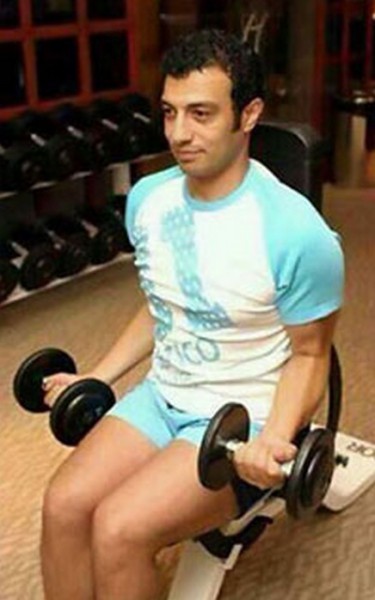 تداول نشطاء الفيس بوك صورة للمغني المصري إيهاب توفيق خلال رفع الأثقال في النادي الرياضي .