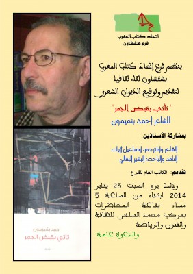 الشاعر المغربي أحمد بنميمون (65 عاما) مهندس تخطيطات حديثة في هندسة الفقر، في سبعينيات القرن الماضي في مكاشفة وبوح مع قرائه السبت المقبل 25 يناير 2014