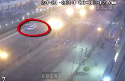اظهرت كاميرات المراقبة توقف السيارة المفخخة التي انفجرت امام مديرية امن القاهرة قبل انفجارها صباح اليوم