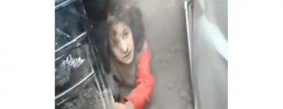 ويظهر الفيديو طفلة، تنتشل من تحت أنقاض مبنى سوي بالأرض، لتخرج بجسدها الرمادي، المغطى برمال القصف العشوائي. جسد لم يتجاوز السنة والنصف من المعاناة. جسد كبله الخوف، تحت الرمال والحجارة.
