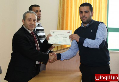 وأقيم حفل الاختتام في حرم الجامعة، بحضور نائب الرئيس للشؤون المجتمعية الدكتور نظام ذياب، ومدير التدريب بالمؤسسة الفلسطينية للتعليم من اجل التوظيف نيفين قدادحة.