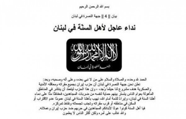 جبهة النصرة تحذر السنة في لبنان
