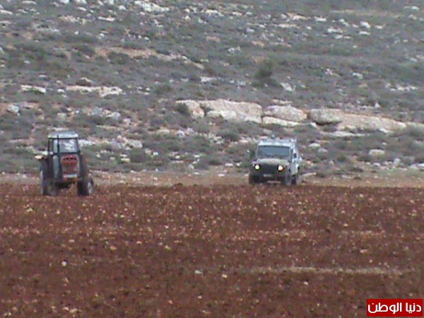 بالصور ..قوات الاحتلال تمنع أهالي جالود من مواصلة زراعة أرضهم ولا زالت ترفض