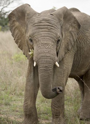 ولكن بالنسبة لهؤلاء النساء الخمس كان أكثر من ترحيب حين تسلل فيل من ورائهم ليتنزع منهم الأضواء وجلستهم السياحية الخاصة .