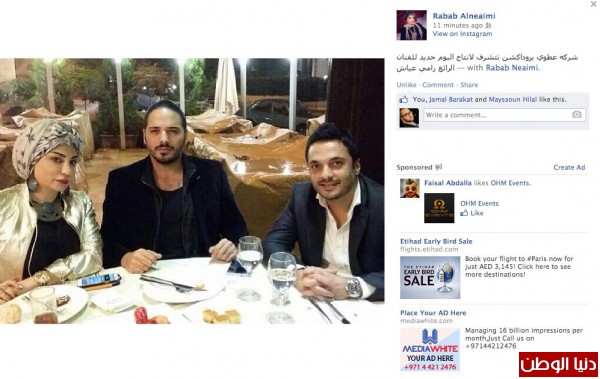 كتبت سيدة الاعمال رباب النعيمي منذ لحظات عبر صفحتها الخاصة في الـ(Facebook) عن استعداد شركتها (Atwi Productions) بالتعاقد مع النجم اللبناني رامي عياش لإنتاج البومه القادم.