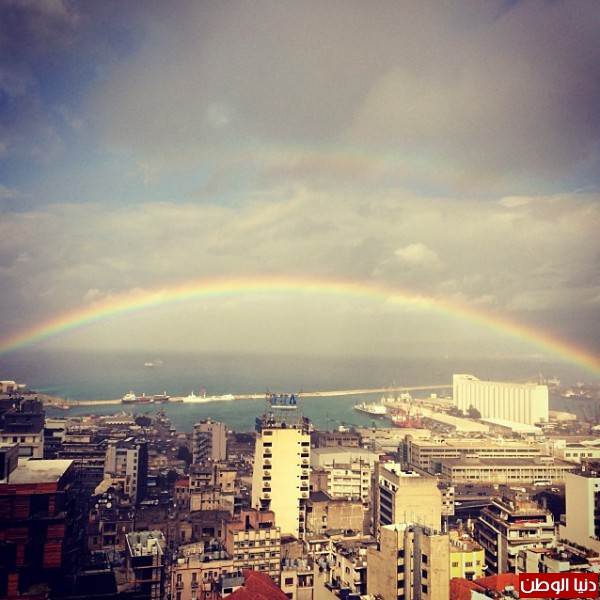 كما نشرت صورة مُذهلة لقوس القزح وكتبت : " قوس قزح من منزلي " , وبعد قليل من نشر الصورة غردت حزينة : "بليز مطر كمان " .