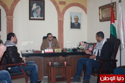 بعد سلسلة من الزيارات التي قام بها وفد من الشباب الفتحاوي , قاموا اليوم بزيارة لعضو اقليم حركة فتح بلبنان ومدير مستشفى الهمشري الدكتور رياض ابوالعينين الذي قام بالترحيب باعضاء الشباب الفتحاوي واثنى على دور الشباب الفلسطيني الذي يتمحور نحو القضية الفلسطينية وما تمر بها من تحديات على المستوى الدولي والاقليمي وصراع الوجود على الارض المحتلة فلسطين .وتحدث ايضا د.ابوالعينين عن امله بالجيل الصاعد الذي يحمل معه قضية وطن وانتماء, ويحمل معه الوعي الفكري والثقافي من خلال بناء القدرات والتمكين الاجتماعي