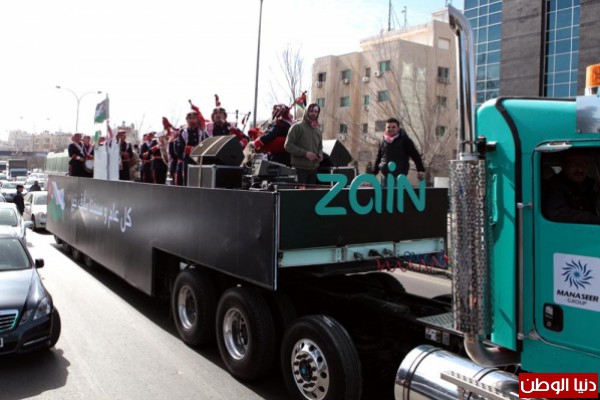 أقامت شركة زين، يوم الجمعة، وللعام الثاني على التوالي، احتفالية ضخمة بمناسبة العيد الثاني والخمسين لجلالة الملك عبدالله الثاني ، ضمت موكباً لأكثر من 550 دراجة نارية ، ومسرحا متنقلا يحمل فرقة موسيقات القوات المسلحة الاردنية التي واصلت تقديم معزوفات موسيقية وطنية طوال مسيرة الموكب الذي استمر من الساعة التاسعة والنصف صباحاً وحتى الساعة العاشرة والنصف صباحاً.