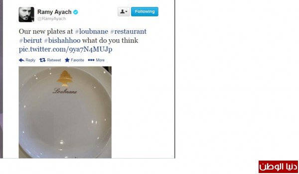 نشر الفنان اللبناني رامي عياش صورة لصحن طعام رائع كتب عليه : " أعطني الناي وغني " وفي الجزء الآخر من الطبق كُتب :" زي العسل على قلبي هواه " .