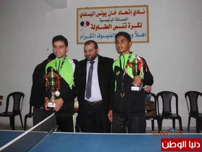 توج لاعبا نادي المجمع الإسلامي حسن عدس ومحمد السقا بالمركزين الأول والثاني لبطولة الشباب لمواليد 1993 بكرة الطاولة في البطولة التي احتضنتها صالة نادي اتحاد خانيونس وبإشراف الاتحاد الفلسطيني للعبة صباح الجمعة الموافق 31/1/2014.