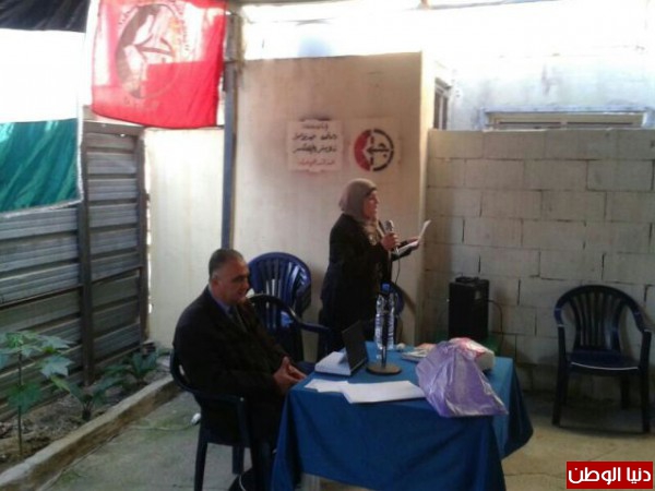 "مشكلات الإستشفاء، نصائح وإرشادات" عنوان لقاء نسوي نظمته لجان المرأة الشعبية في مكتب الجبهة الشعبية في مخيم البص، قدّم للندوة سهام عكاوي وتحدث فيها مسؤول الملف الصحي للجان الشعبية في منطقة صور الأستاذ حسين عثمان، حيث عرض طبيعة التعقيدات التي يواجهها المريض الفلسطيني وكذلك الأخوة النازحين من مخيمات سوريا وقدّم بعض الإرشادات.