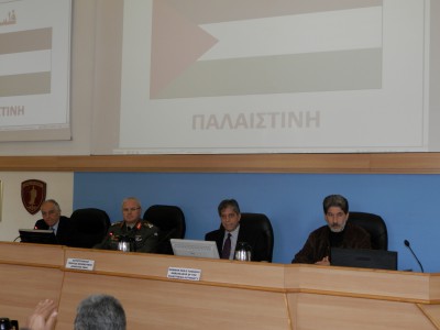 بعد ذلك توجه السفير طوباسي وبرفقته اللواء إلى القاعة الرئيسية للكلية حيث كان بانتظاره كافة كبار الضباط المشاركين في دورات الكلية بالإضافة إلى طاقم الكلية، وتم القاء محاضرة من قبل السفير، حيث نقل تحيات سيادة الرئيس محمود عباس "ابو مازن" والشعب الفلسطيني إلى الشعب اليوناني الصديق وإلى القوات المسلحه اليونانية. وشكر اليونان حكومة وشعباً على دورها التاريخي في دعم الشعب الفلسطيني وقضيته العادلة، وان هذه العلاقة والتي تمتد إلى جذور التاريخ حيث ان اليونان كانت من ضمن الدول القليلة والتي صوتت ضد قرار تقسيم فلسطين التاريخية عام 1947، والمعروف بقرار 181، كما وانها وقفت مع الشعب الفلسطيني طوال فترة نضاله ضد الاحتلال الإسرائيلي منذ الثورة المسلحة والمقاومة الشعبية وبناء مؤسسات الدولة الفلسطينية وتوجت كل ذلك بتصويتها لصالح فلسطين كدولة غير عضو في الجمعية العامة للأمم المتحدة.