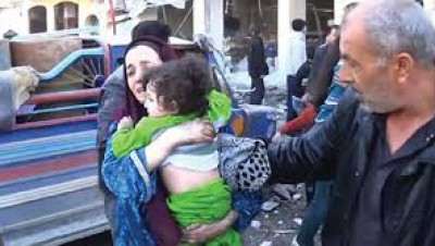 فرحة أهالي حلب لعدم انفجار أحد البراميل المتفجرة بعد سقوطها من طائرة سورية