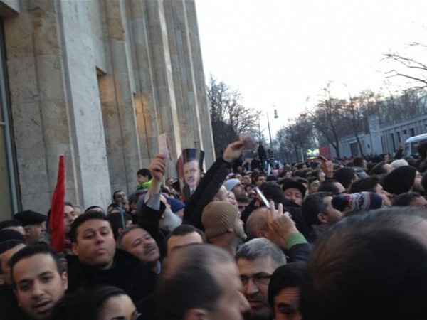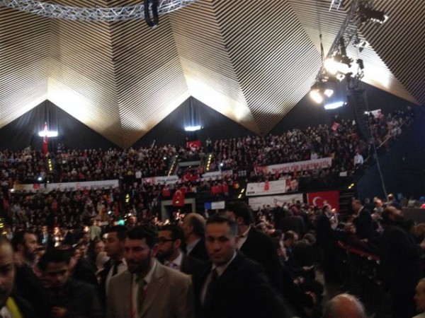 واستطرد في وصفه لاستقبال اردوغان: شيوخ وشابات وشباب.. رجال ونساء وأطفال.. رأينا الحضور من مختلف الجنسيات.. الكل أتى طواعية رغم عناء الوصول والاصطفاف والزحمة.. وشعرنا ولمسنا كم هو احترام أبناء شعبه له.. وقد ذهل الألمان من هول المشهد غير المعتاد لهم.. وخاصة قوات الأمن التي أمنت المكان.. ذهلت بتدفق البشر إلى القاعة.. حيث عدد الذين ظلوا يراقبون شاشات العرض في الخارج.. يفوق عدد الموجودين داخل القاعة أضعاف مضاعفة...!!
