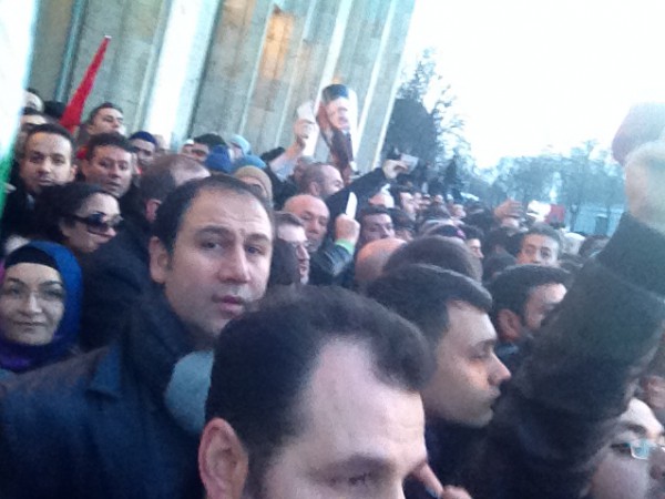 واضاف: منذ يوم الإثنين الموافق 03/03/2014 .. وعند وصوله مكان إقامته.. زحفت الجماهير بالآلاف في استقبال حاشد أمام الفندق في استقبال جماهيري قل نظيره لقائد أو رئيس.. وعند وصوله.. وبمجرد نزوله من العربة التي استقلها.. اتجه على الفور لمصافحة المستقبلين من ابناء شعبه في برلين.. في منظر غير مألوف للقادة الذين يزورون ألمانيا...!!