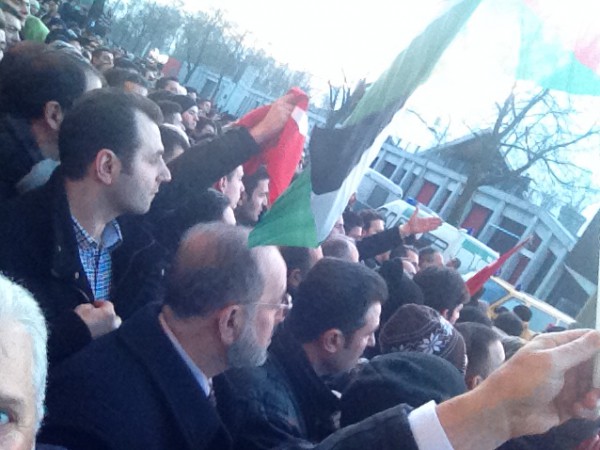 وتابع: اليوم كان لقائه بأبنائه وإخوته ومحبيه.. حيث الألوف من البشر من أبناء شعبه في برلين تصطف في طوابير للإستماع ولمشاهدة الزعيم التركي أوردوغان.. وكنا بصحبة من الأطياب المخلصين في المدينة هناك.. وعلم فلسطين يلازمنا وهو يرفرف في سماء أضخم قاعة في برلين.. وقد لبينا نداء ودعوة الإخوة الأتراك في برلين.. مشهد تاريخي وأنت ترى الزعيم القائد.. وشعبه يحتضنه ويلفه بقلب مليئ بالدفئ والمحبة ويحمله على الأكتاف.. مشهد قل نظيره اليوم.. وتذكرنا مشهد استقبال الشهيد القائد ياسر عرفات أبو عمار رحمه الله .. عندما عاد من أمريكا ورفض التوقيع في كامب ديفد كيف حمل على الأكتاف.. كما وتذكرنا عودة جثمانه الطاهر إلى أرض الوطن.. وقد أقيمت له مراسيم وداع القادة والزعماء في ثلاث قارات.. وأبى جثمانه إلا أن يحلق فوق غزة.. ليودع شعبه الوداع الأخير.. وكانت الضفة المحتلة بانتظار جثمانه الطاهر.. مشهد لا نعتقد أنه سيتكرر لزعيم مثله...!!