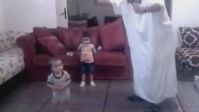 ورقص رئيس الوزراء مع حفيده الصغير وهو يرتدي "قفطاناً" من النوع المخصص للمنزل، وهو يلاعبه ويصفق على أنغام الأغنية.