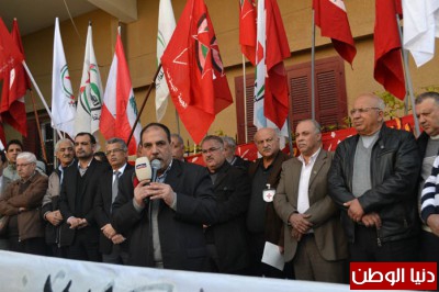 واضاف امام ما تتعرض له المنطقة نقول لا بد من اعادة الاعتبار الاعتبار لقضية الوحدة العربية وقضية فلسطين، ما يؤكد الرابط بينهما، فالوحدة العربية مرتبطة بفلسطين وتحريرها، وفلسطين مرتبطة بقضية الوحدة العربية، وان الحقوق المشروعه للشعب الفلسطيني لن تعود عبر المفاوضات ولا عبر مشروع كيري او وضع قوات الناتو في الاغوار بل عبر المقاومة وعبر مواصلة مسيرة النضال من خلال وحدة وطنية فلسطينية حقيقية ، لان طريق فلسطين هي طريق العزة والكرامة .
