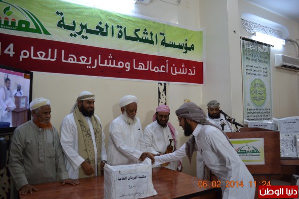دشنت مؤسسة المشكاة الخيرية بمحافظة الحديدة يوم أمس مشاريعها وأعمالها الخيرية للعام 2014 م بحضور عدد من أعضاء ومنتسبي المؤسسة .