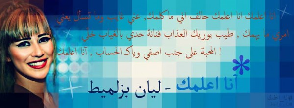 بعد النجاح الباهر لاغنية "بحبك يا فلسطين" تصدر الفنانة ليان بزلميط نجمة ستار اكاديمي بموسمه الثامن اغنيتها الجديدة تحت عنوان "انا اعلمك" باللهجة الخليجية.