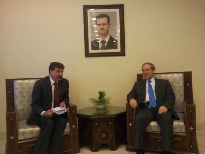 من جهته أكد الدكتور مقداد بأن سوريا مستعدة على الدوام لتقديم كل ما يلزم من تسهيلات لإغاثة الشعب الفلسطيني في مخيم اليرموك وإنها مع أي حل يؤدي لإنهاء أزمة اليرموك تمهيداً لعودة الأهالي إليه, هذا وقد شرح د. مقداد نتائج الجولة الأولى من مؤتمر جنيف2 وأكد على أن سوريا جادة بانجاح جلسات الحوار وستسعى لذلك, من اجل عودة الأمن والأمان للبلاد ومكافحة الإرهاب وبقاء سوريا واحدة موحدة قوية متماسكة مقدراً موقف القيادة الفلسطينية الداعم لوحدة سوريا واستقراراها.