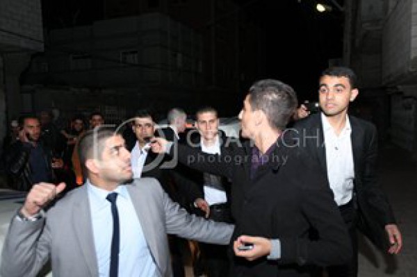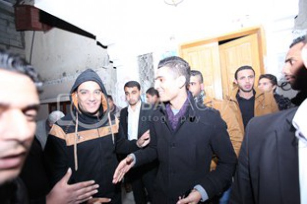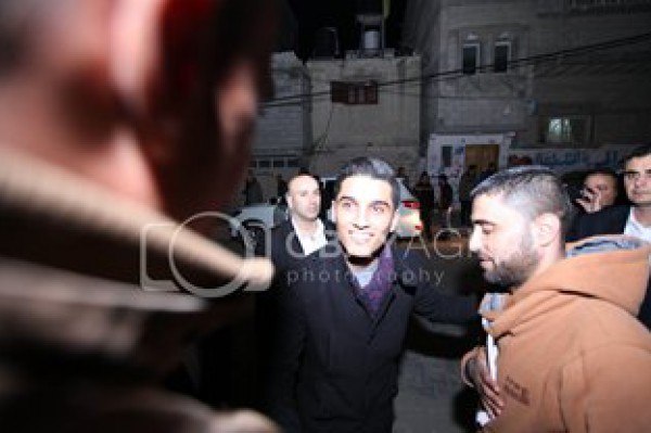 و كان في استقباله اهالي المخيم و جيرانه و اهله و اقاربه ومحبي الفنان و بعدها توجه عبر سيارات خاصة من وكالة الغوث "الاونوروا" الى محل اقامته .