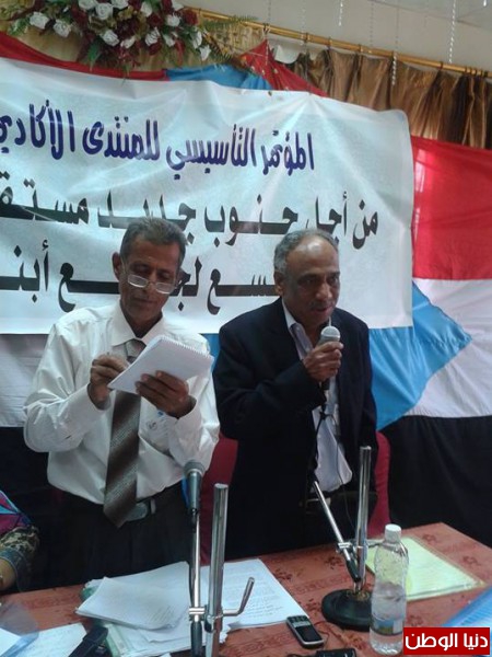 انعقد صباح يوم امس الاول السبت بقاعه القمه بخور مكسر بالعاصمة عدن مؤتمر المنتدى الأكاديمي الجنوبي بحضور عدد كبير من الباحثين والاكاديميين وأساتذة الجامعه الجنوبيين وافتتحت جدول اعمال المؤتمر للجلسة الافتتاحية بالقران الكريم وقراءة الفاتحة على ارواح شهداء الجنوب وعدد من الكلمات حيث القى لدكتور قاسم المحبشي كلمة منسقيه المنتدى الاكاديمي الجنوبي واستعرض فيها عن المرحله التي تمر بها قضية شعب الجنوب وثورته ثورة استدمت نضالها السلمي في مطلع 2007م وحتى يومنا هذا وتطرق الدكتور المحبشي الرواية حول مؤتمر الحوار ومخرجاته التي وصفها بقولة مؤتمر باطل وما بني على بطل فهوا باطل واصفا ان الحوار ومخرجاته لا يصب مع القضية الجنوبية ولا مطالب الشعب.