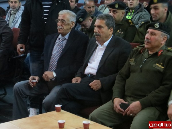 بحضور عضوي اللجنة المركزية لحركة فتح اللواء سلطان أبو العنيين واللواء توفيق الطيراوي ووليد ابو مويس رئيس بلدية جنين وقادة الأجهزة الامنية اضافة الى عضوي المجلس التشريعي جمال حويل وجمال ابو الرب وعطا ابو ارميلة مسؤول حركة فتح