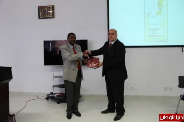 وفي الختام شكر اللواء سيل مكاكالا سفير دولة فلسطين على تلبيته الدعوة ثم تبادلا الهداية التذكارية في ختام الحفل.