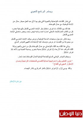 عقد لقاء يوم الثلاثاء 11 فبراير 2014 بمقر الإتحاد المغربي للشغل باليوسفية حضره كل من الكاتب العام للإتحاد المحلي اعمارة احمد ونائبه ابيض محمد وبعض مناضلي الإتحاد المغربي للشغل.