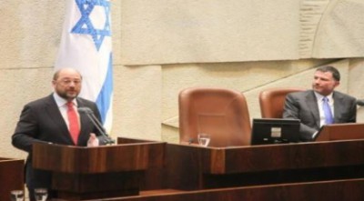 أثار خطاب رئيس البرلمان الأوروبي "مارتن شولتس" الذي ألقاه اليوم الأربعاء داخل قاعة الكنيست الإسرائيلي، عاصفة من الغضب كانت قد بدأت بانسحاب رئيس حزب البيت اليهودي "نفتالي بينت" من القاعة مروراً بعدم حضور كامل الهيئة البرلمانية في الكنيست وليس انتهاءً برد رئيس الوزراء الإسرائيلي بنيامين نتنياهو الساخر على الخطاب.