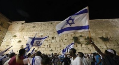 يتظاهر الالاف من المستوطنين شرقي القدس رفضاً للمفاوضات الاسرائيلية مع السلطة الفلسطينية، في خطوة وصفتها وسائل الاعلام العبرية باستعراض القوة.