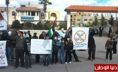 وطالب المعتصمون بـ "إقالة رئيس بلدية عين الباشا عيسى أبو عرابي والمجلس البلدي، وإحالتهم إلى التحقيق بشبهة فساد".