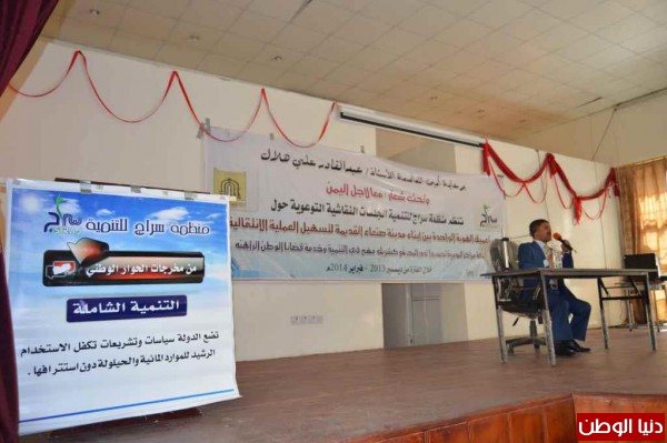 نفذت منظمة سراج للتنمية، أمس السبت في صالة المجلس المحلي بصنعاء، جلسات نقاشية توعوية حول تعميق الهوية الواحدة بين أبناء مدينة صنعاء القديمة لتسهيل العملية الانتقالية.