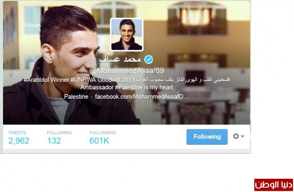 حيث وصل عدد مُتابعي عساف على تويتر إلى 600 ألف مُتابع .
