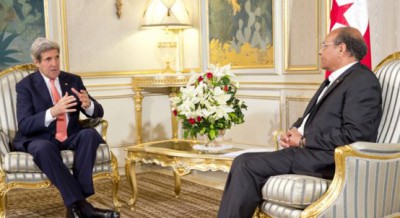 وخلال زيارته القصيرة، التقى كيري رئيس الوزراء التونسي مهدي جمعة والرئيس المنصف المرزوقي و أجرى معهما محادثات.
